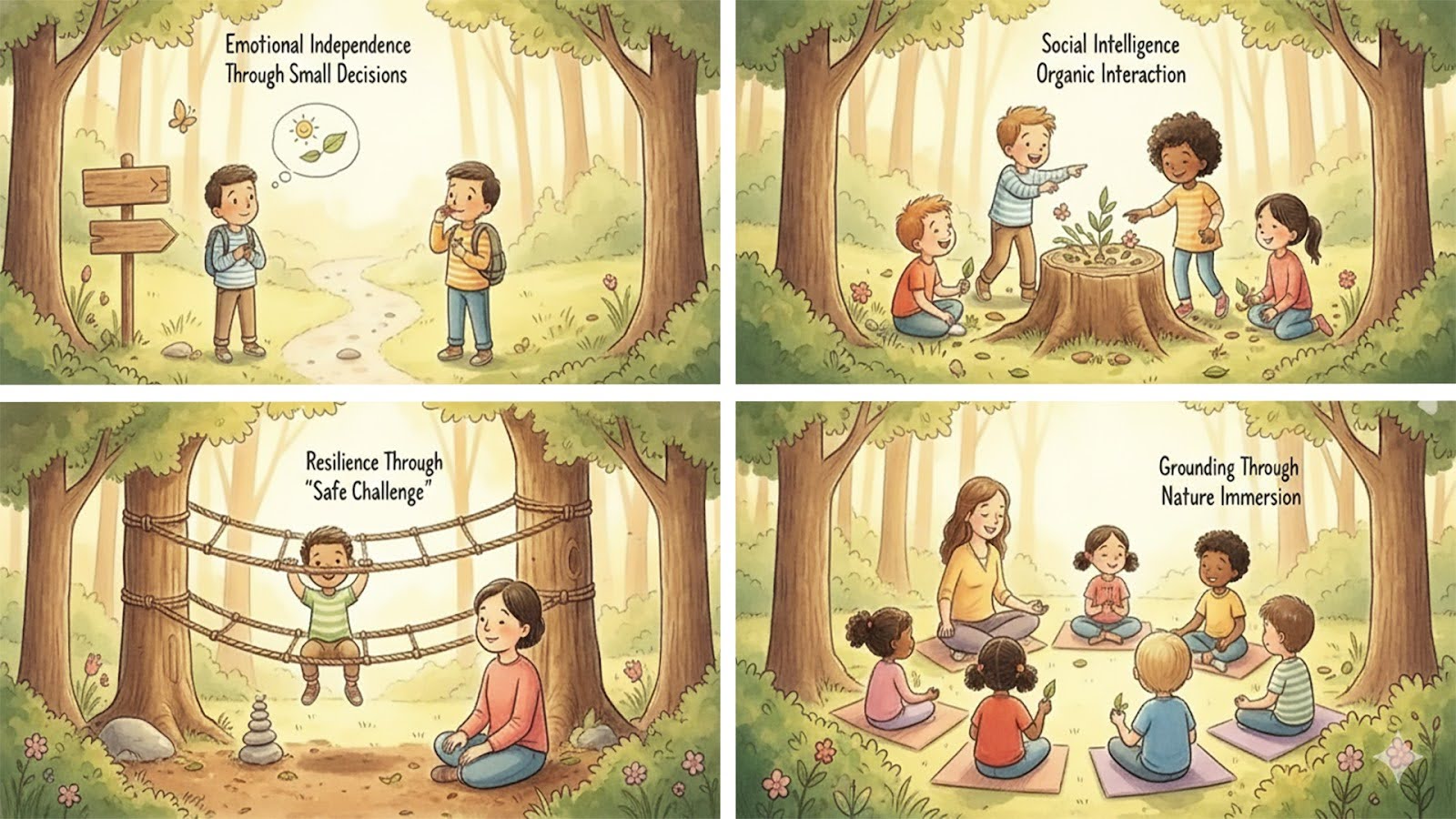 Nature-immersive experiences for ages 6-12, designed for emotional growth and self-discovery