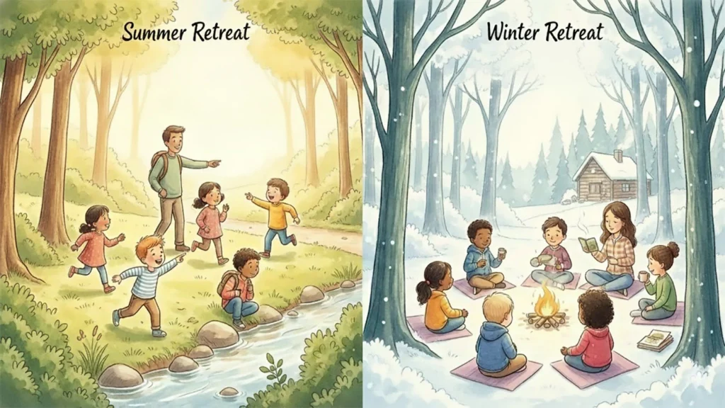 Summer retreats tend toward energy, exploration, and expansion. Longer days. More outdoor time. Children are naturally more active, more social, more outward-focused. It’s a season for building connections, trying new things, discovering what you’re capable of physically and socially.