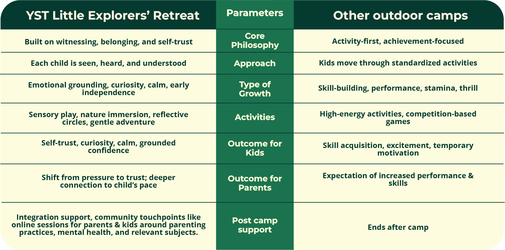 Every child carries a natural curiosity, imagination, and a quiet courage that grows when the right space is offered. This retreat creates those spaces through outdoor experiences, nature-led activities, and simple moments that help them discover what already lives within them.